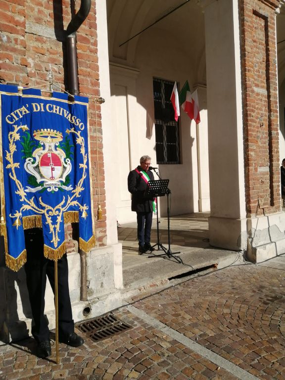 Sulle note della tromba della Società Filarmonica Giuseppe Verdi, ed il coordinamento dell'Associazione Nazionale Bersaglieri di Chivasso poi, ha avuto luogo la cerimonia dell’alzabandiera al Monumento ai Caduti di tutte le guerre in piazza d’Armi.