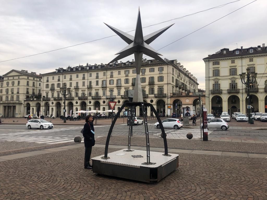 Da questa mattina la riproduzione della Stella della Mole è arrivata in piazza Vittorio.