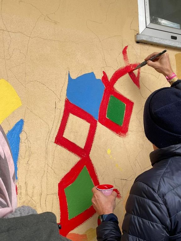 Insieme ai tre artisti, è anche coinvolto nella realizzazione un gruppo di richiedenti asilo afghani, ospiti in queste settimane della Cascina Falchera.