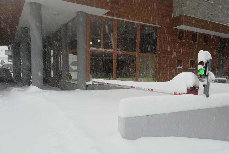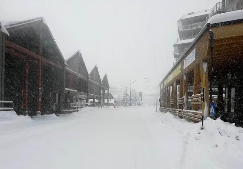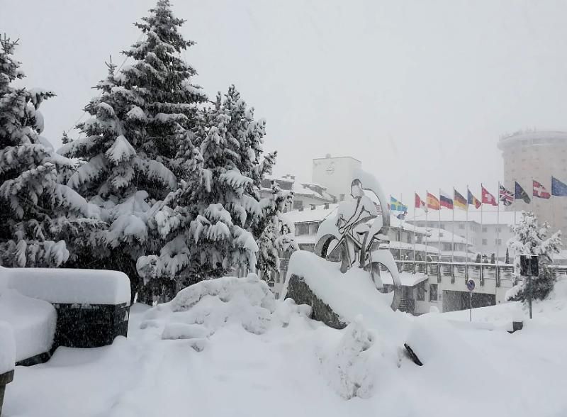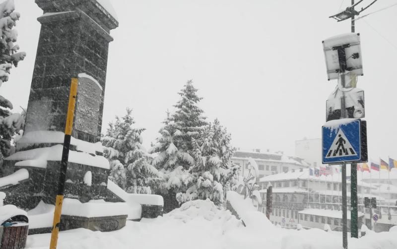 Sestriere avvolta dalla neve dopo la nevicata iniziata nella notte: stamattina c’erano oltre 30 centimetri e se ne attende ancora mezzo metro entro la serata.