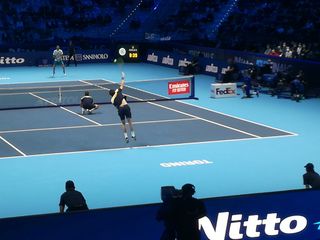 Intanto nel primo pomeriggio Novak Djokovic (che ha ricevuto il premio per aver concluso per il settimo anno consecutivo al primo posto della classifica mondiale) ha esordito nel torneo, battendo il norvegese Casper Ruud per 7-6 6-2 nel primo match del gruppo verde. Poi, si è dilettato a parlare in italiano, per la gioia del pubblico, ricordando come il suo amore per la racchetta sia iniziato nei primi anni Novanta, vedendo Pete Sampras vincere per la prima volta Wimbledon.