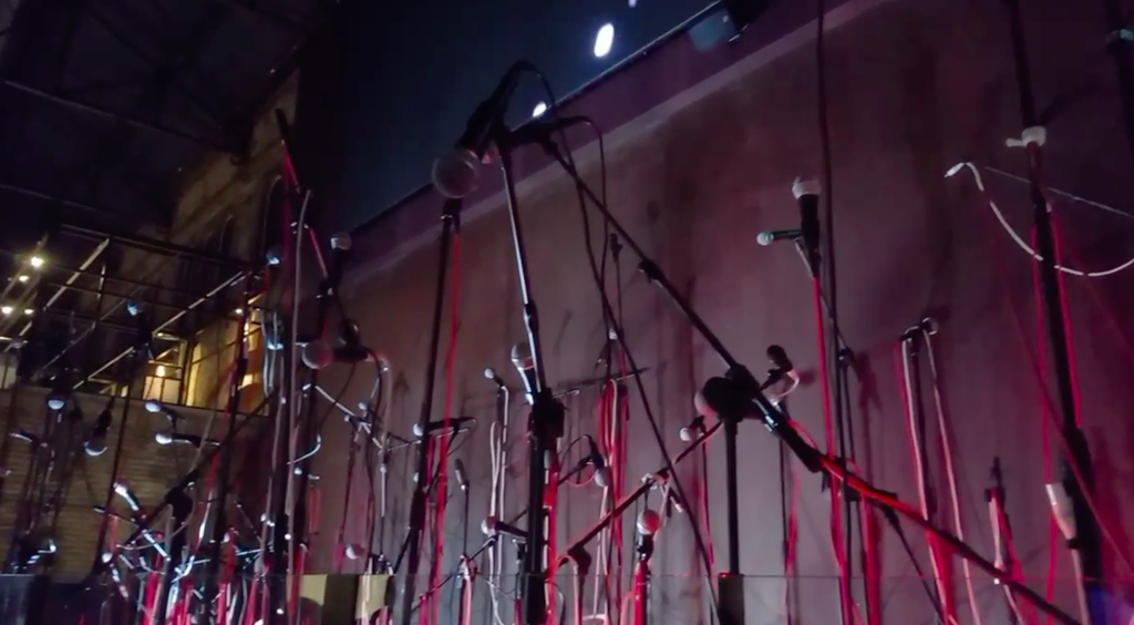Un’ipertecnologica foresta di microfoni sempre in ascolto dunque che diffonde un flusso sonoro ininterrotto, sempre differente, accompagnato da immagini video, che cambiano insieme al variare delle condizioni dell’ambiente circostante.