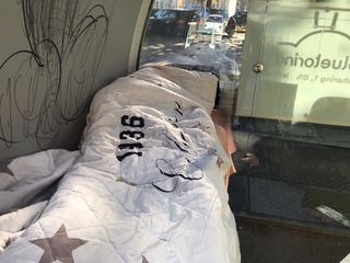 La presenza del clochard in zona è nota: ogni giorno migliaia di persone passano davanti al suo rifugio di fortuna, allestito per ripararsi dal freddo
