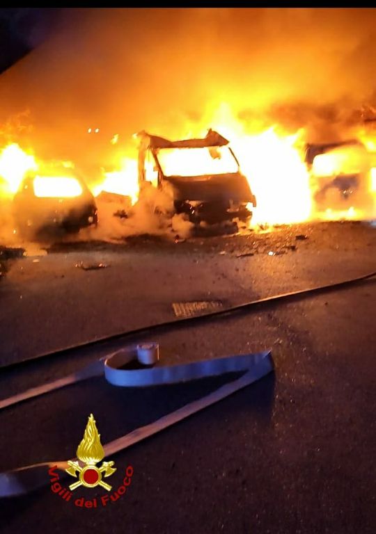 I mezzi erano parcheggiati sotto un ponte della strada ferrata. Sul posto i Vigil del Fuoco, i Carabinieri e i tecnici della rete ferroviaria