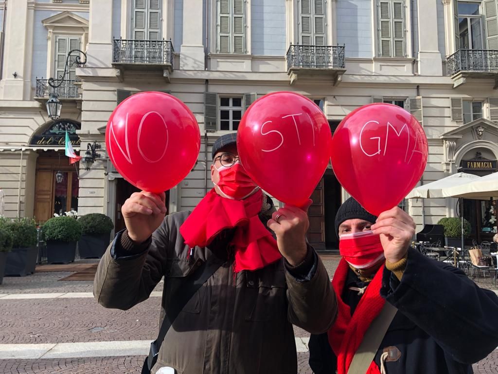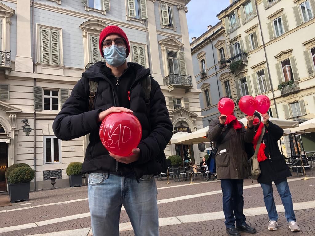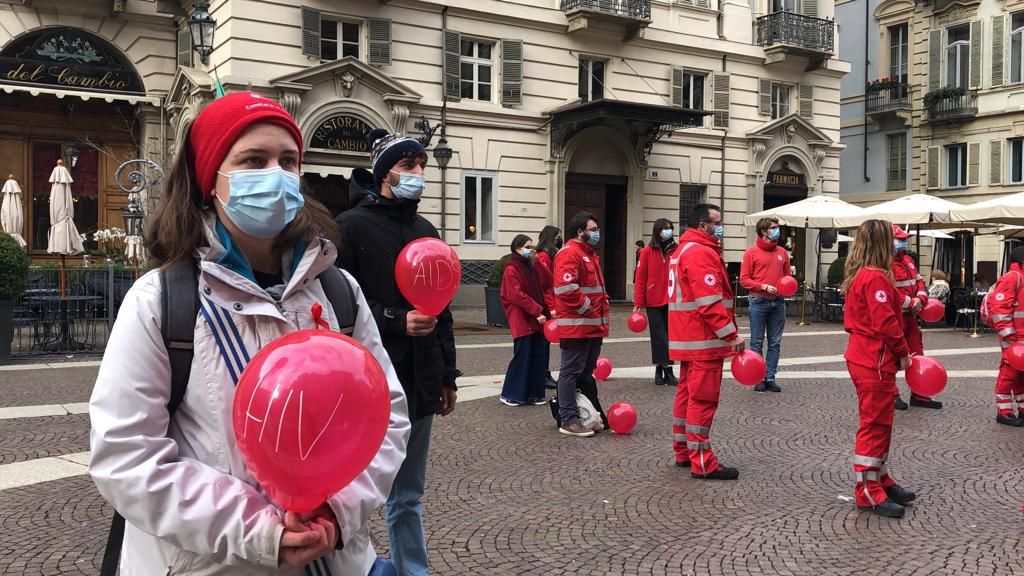 Palloncini rossi per la lotta all’HIV. In occasione della Giornata Mondiale della lotta all’Aids. È il flashmob organizzato dalla Croce Rossa Italiana Comitato di Torino insieme agli altri Comitati del Piemonte. I volontari e cittadini hanno formato un fiocco, simbolo della lotta all’Hiv, davanti alla facciata di Palazzo Carignano.