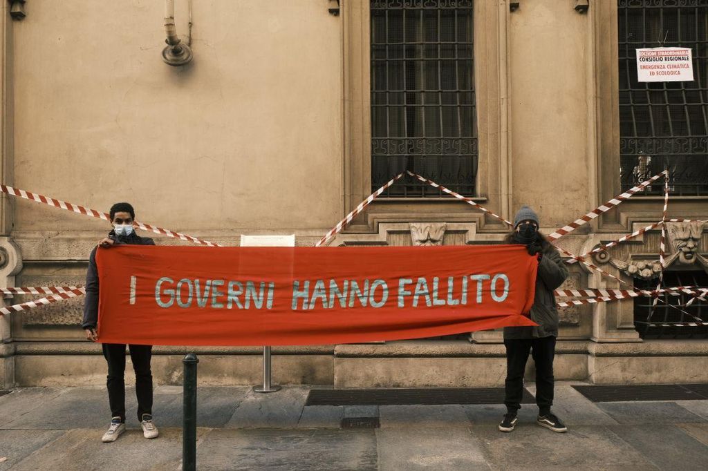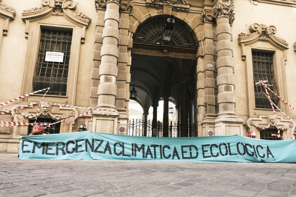 A pochi minuti dall’inizio del Consiglio Regionale, questa mattina gli attivisti per il clima hanno messo simbolicamente in stato di emergenza climatica la sede dell'ente