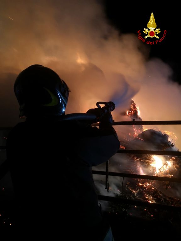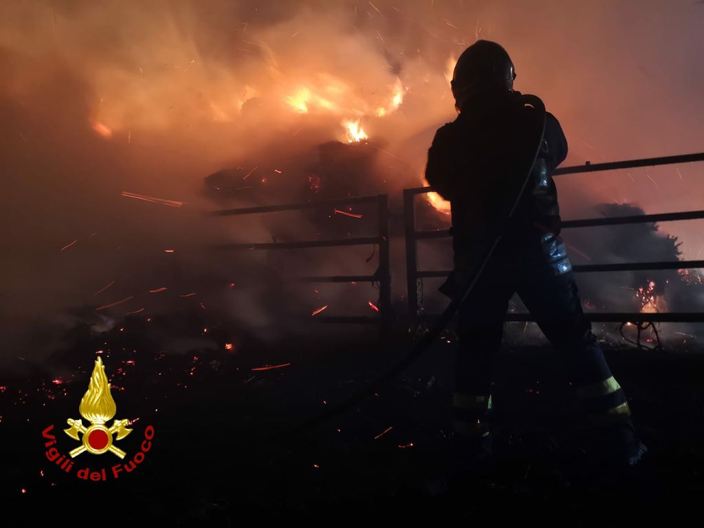 Le fiamme sono divampate in via Rivera dove si trovava un deposito con circa 50 rotoballe