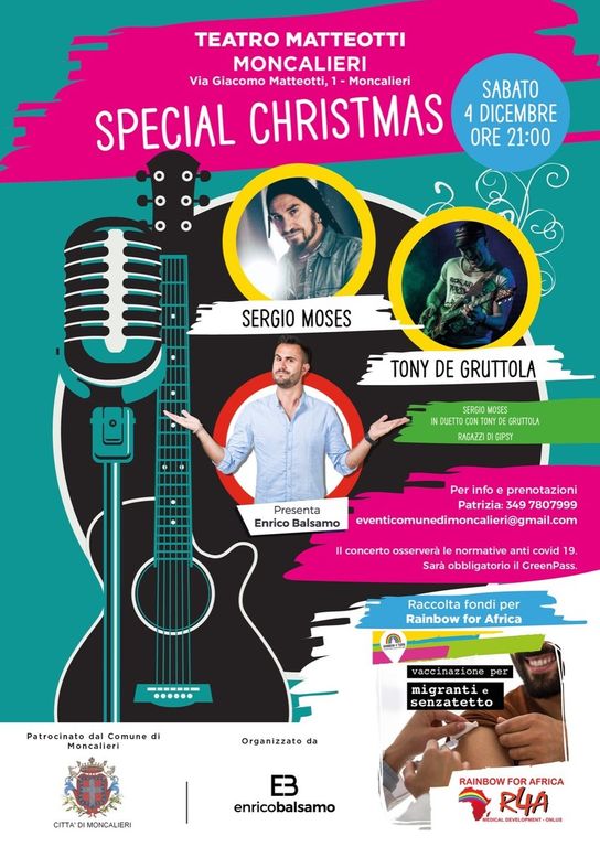 Nella serata di oggi, sabato 4 dicembre, il teatro Matteotti di Moncalieri ospiterà un evento spettacolo dal sapore natalizio che sarà anche occasione di fare del bene. La prima edizione di Special Christmas, infatti, sarà uno spettacolo di intrattenimento comico e musicale, con le offerte raccolte in favore dei progetti solidali Rainbow for Africa e Rainbow for Turin.