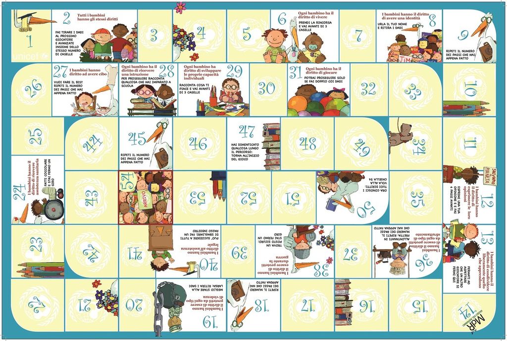 Il Comitato provinciale Unicef di Torino, dopo questo periodo di pandemia prosegue con maggiore determinazione nella promozione della Convenzione dei diritti dell’infanzia e dell’adolescenza, nelle Scuole, presso l’Ospedale Regina Margherita e Casa UGI, promuovendo la conoscenza dei diritti, riscrivendoli sui sentieri illustrati del famoso gioco da tavola. Nasce il Gioco dell’oca con un tabellone segnato dai Diritti fondamentali dell’Infanzia e dell’adolescenza, che piccoli e grandi, giocando potranno “attraversare”, leggere e ricordare.
