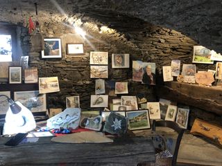 E così dove una volta dormivano e si abbeveravano gli animali, ecco che poggiano acquerelli e quadri. I protagonisti variano molto, dagli animali alle strade di montagna, dai ritratti alle brumose atmosfere torinesi.