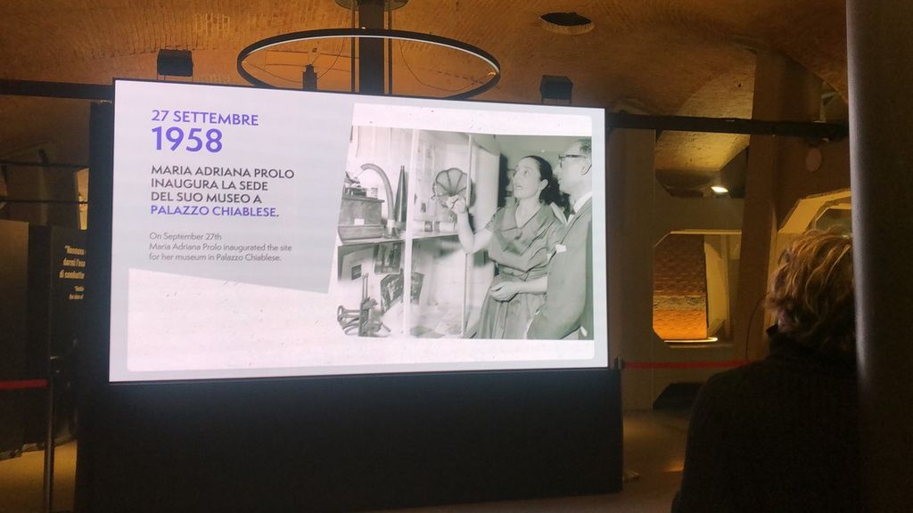 Un ambiente sostenibile e rinnovato con 100mila euro che riporta alla luce le colonne in mattoni e quelle in cemento, insieme al pavimento originale in vetro, e che riaccende con cerchi di luce e faretti modulabili la saletta per ospitare le mostre temporanee. E ultima novità, un grande schermo ledwall da 4 metri per 3 che oggi proietta il video racconto di due personaggi che hanno fatto la storia del Museo del Cinema e della Mole: Maria Adriana Prolo e Alessandro Antonelli.