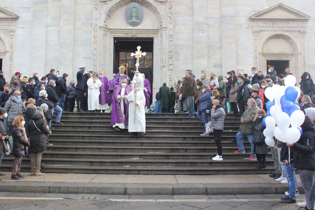 Oggi al Duomo l'ultimo saluto: sul sagrato il cofano di un'auto, una delle grandi passioni del giovane, circondato da palloncini blu e bianchi