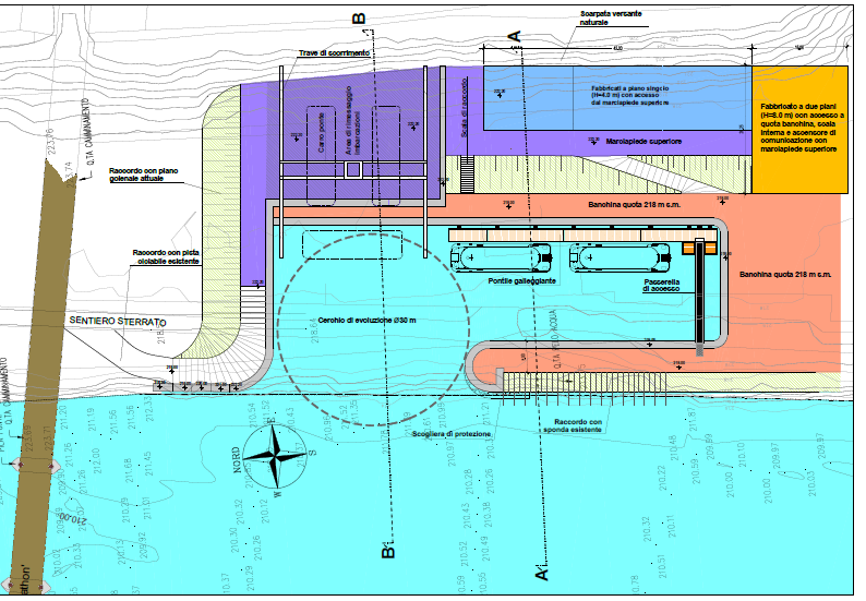 Nel dettaglio sono previsti interventi di manutenzione degli imbarchi esistenti (Borgo Navile, Le Vallere, Piscina Lido, Italia ’61, Borgo Medievale, Murazzi), con rifacimento della pavimentazione in legno dei moli, oltre alla sostituzione delle transenne in ferro ammalorate. Verrà poi realizzato una struttura per il rimessaggio delle imbarcazioni subito a monte della passerella Maratona, costituita da una darsena lunga 70 metri e larga 23, dotata di pontile galleggiante e carro-ponte per sollevare gli scafi.