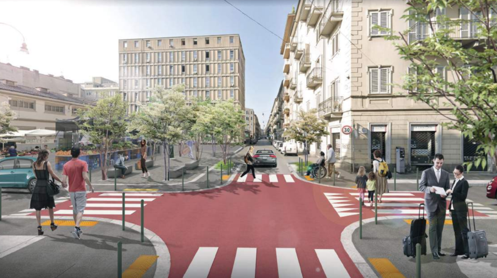 L'obiettivo del progetto è di ridurre la velocità delle auto, soprattutto agli incroci con via San Secondo e dagli accessi al quartiere da via Sacchi. Per moderare il traffico verranno rialzate le intersezioni stradali, allargati gli angoli dei marciapiedi - con aumento degli spazi dedicati al pedone, inseriti dei paletti dissuasori e rifatta la segnaletica. Previste poi nuove alberate con aiuole drenanti, oltre alla ricollocazione delle aree di carico-scarico e dehors.