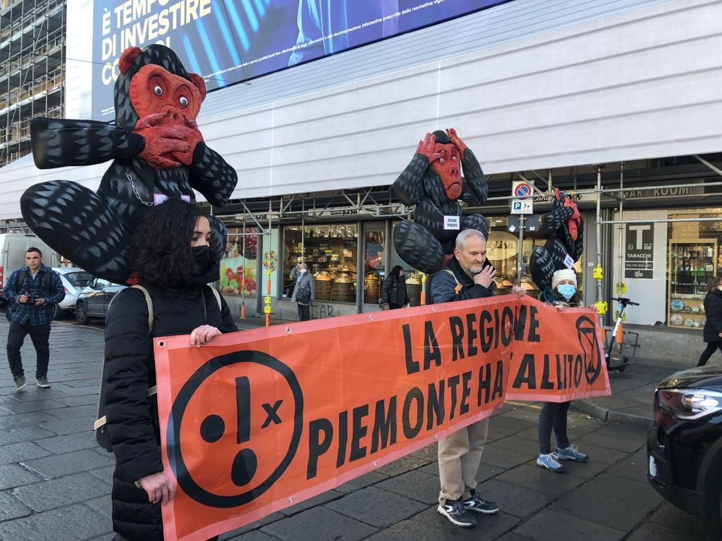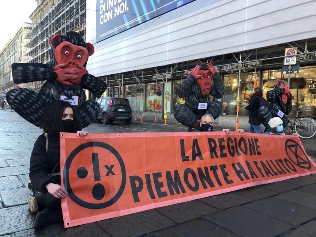 “La Regione Piemonte ha fallito”. Continua la protesta degli Extinction Rebellion in piazza Castello. Il gruppo di attivisti per l’ecologia chiedono alla Regione Piemonte un intervento concreto “perché nulla per ora è stato fatto”.