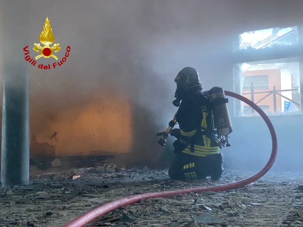 Incendio all'ex bowling di Chiusa di San Michele, in due ore i Vigili del Fuoco domano le fiamme