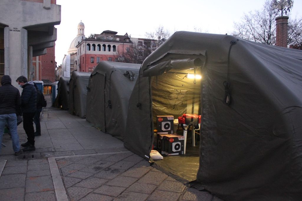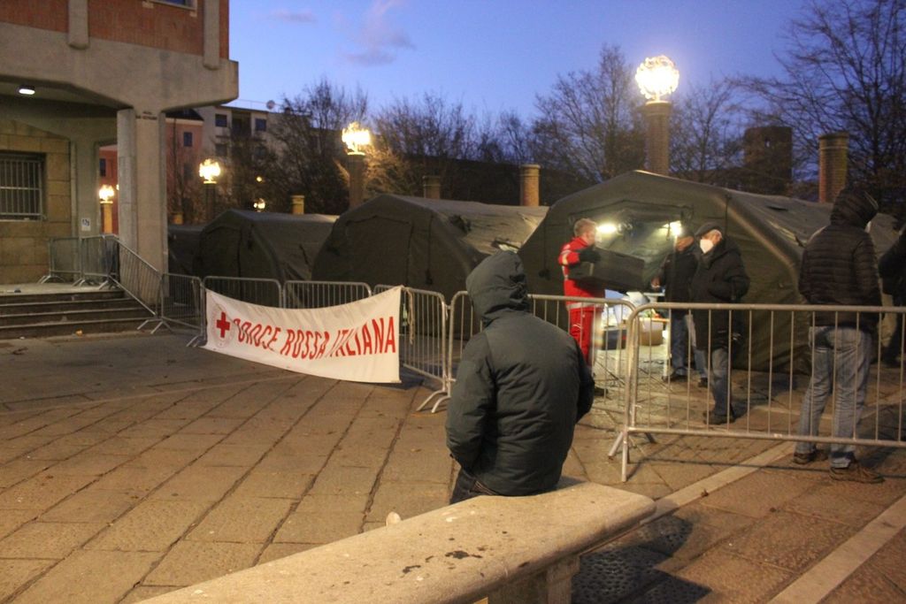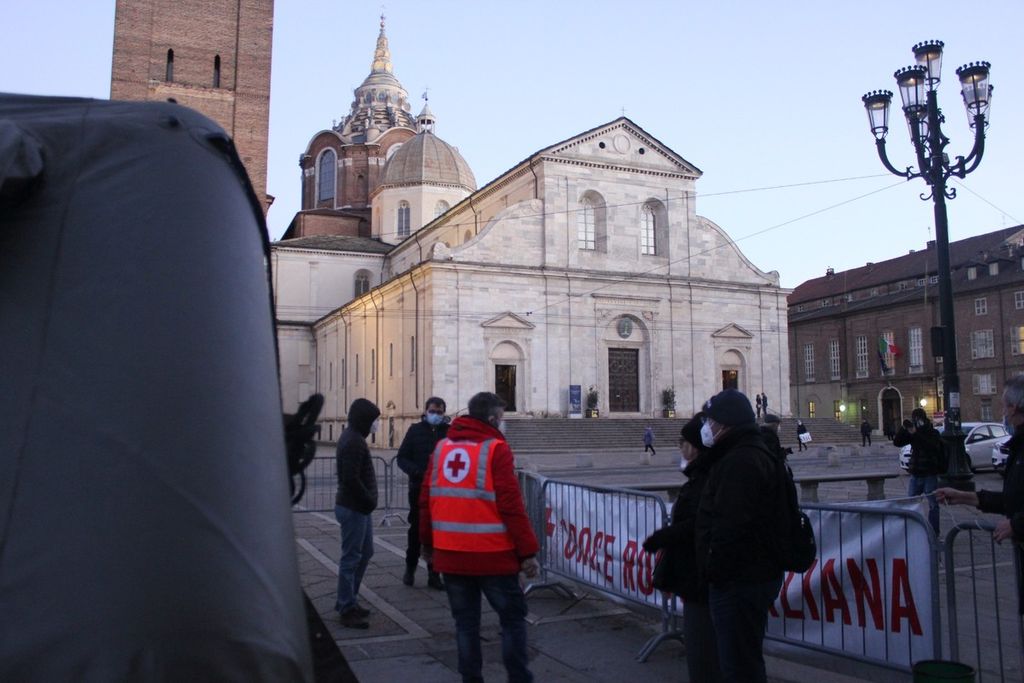 “Oggi fa freddo e c’è vento: ci aspettiamo il pienone”. Non poteva esserci un giorno più adatto per inaugurare il campo di accoglienza per clochard allestito dalla Croce Rossa in piazza San Giovanni, davanti al Duomo di Torino.
