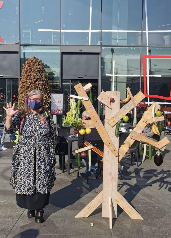 Nel corso dell’iniziativa “Sabato Salvacibo” è stata inaugurata l’opera di Cristina Pistoletto “Albero della terra e della vita”, sulla quale hanno trovato posto frutti e ortaggi recuperati al mercato, ed è andato in scena il monologo “Buttare o non buttare” con performances artistiche degli Ecomori, migranti e richiedenti asilo che raccolgono eccedenze alimentari nei mercati a favore delle persone in difficoltà.