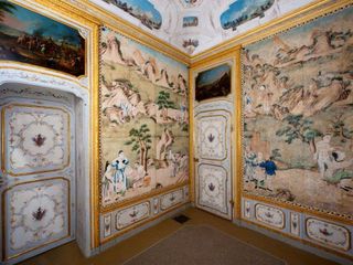 Il fascino dell'Oriente conquista l’Europa a partire dal 1600 con l'arrivo nel Vecchio Continente di merci preziose quali lacche, sete, carte da parati e porcellane che vanno ad abbellire le dimore di re e principi. In Italia, i Savoia, influenzati anche loro dall’esotismo, creano ambienti che riecheggiano questi luoghi lontani. I Gabinetti Cinesi della Palazzina di Stupinigi hanno una tappezzeria di carta dipinta a tempera della seconda metà del Settecento, importata dalla Cina meridionale, che raffigura scene di vita cinese su sfondo roccioso.