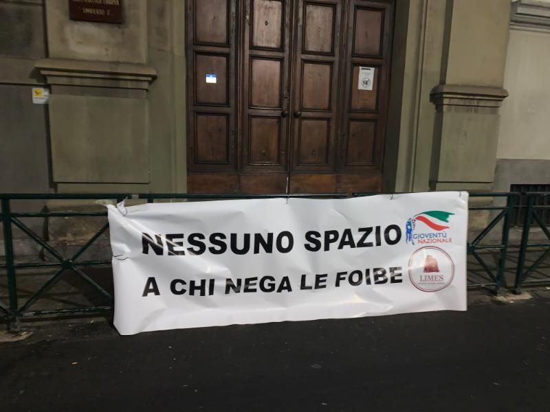‘’Con questa azione abbiamo voluto contestare l’evento che si terrà lunedì 7 febbraio al Convitto Umberto I, che vedrà la partecipazione dello storico Eric Gobetti per tenere una conferenza sul tema delle foibe.’’ - dichiarano in una nota i militanti del movimento - Riteniamo inaccettabile che all’interno di un istituto scolastico possa parlare davanti a degli studenti chi, con teorie revisioniste, tende a minimizzare e dare una visione distorta di quanto avvenne sul confine orientale durante e dopo la seconda guerra mondiale. Migliaia di persone furono costrette a emigrare dalla propria terra d’origine e altre migliaia furono massacrate e infoibate dal regime comunista di Tito con la sola colpa di essere italiane - continuano - Ci opponiamo fermamente a iniziative di questo tipo e chiediamo che l’istituto torni immediatamente sui propri passi con una chiara presa di posizione sul tema.’’.