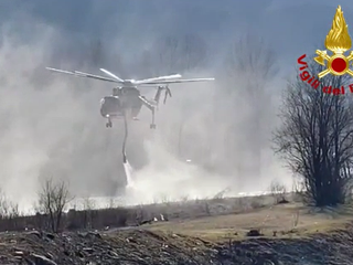 Grosso incendio nei boschi attorno a Bussoleno, Vigili del Fuoco in azione con l'aiuto dell'elicottero
