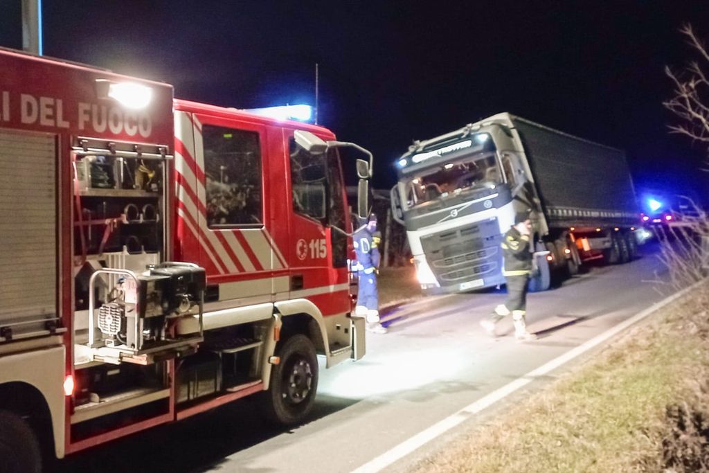 Camion fuori strada: chiusa la sp 156 tra Bibiana e Cavour
