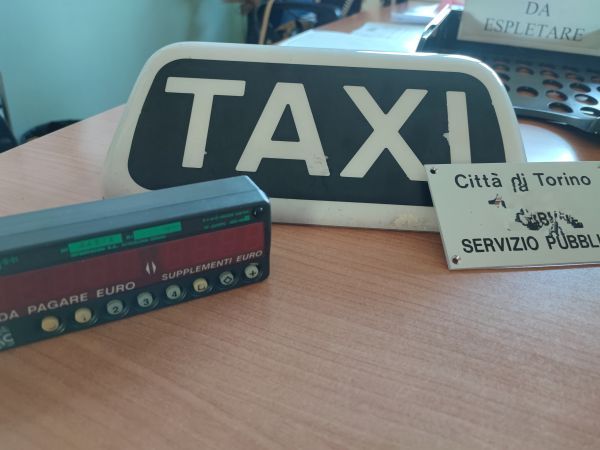 La Fiat Panda bianca aveva tanto di insegna sul tettuccio, targhetta del servizio pubblico di piazza sul retro e tassametro non funzionante all’interno dell’abitacolo