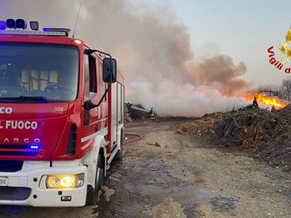 Tre autopompe e due autobotti con circa 20 Vigili del fuoco impegnati dalle 17,30 a Giaveno in via Avigliana per l'incendio di una catasta di legno.