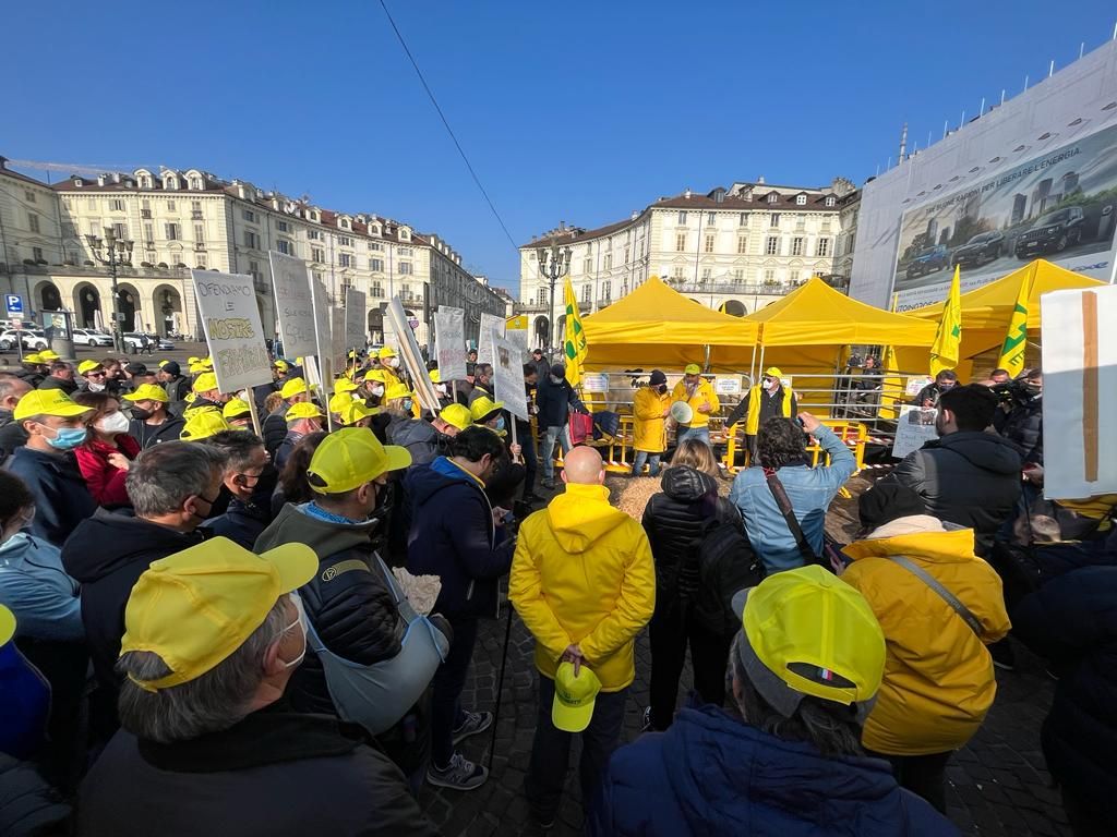 Un migliaio di manifestanti ha sfilato nel cuore della città, dove c'è il tradizionale mercato contadino della domenica. Sotto attacco anche la gestione della peste suina. Il presidente Moncalvo: "Serve un deciso intervento per contenere i rincari delle bollette"