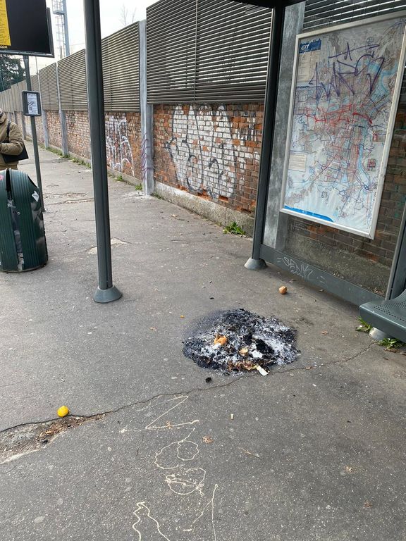 Stamattina i viaggiatori hanno trovato un cumulo di cenere con resti di pezzi di carta, una scatoletta di tonno e residui di rifiuti