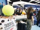 Srotolato lo striscione sopra l’ingresso principale: "Cop2025: 1.5°C di ritardo"