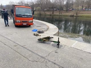 Biciclette, monopattini, batterie per auto, ben 20 sacchi di bottiglie di plastica, giubbotti e rifiuti di vario genere. È questo il "tesoro" di spazzatura che ha restituito questa mattina il Po, durante una pulizia straordinaria fatta dagli addetti dell' Amiat su richiesta dal Comune di Torino.