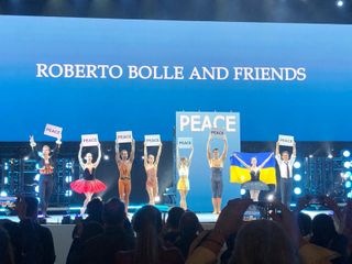 Roberto Bolle & Friends solidali con l’Ucraina. Il noto ballerino, insieme alla sua compagnia, al termine dello spettacolo andato in scena nell’Auditorum di Dubai Expo ha esposto la bandiera dell’Ucraina e cartelli con su scritto “Peace”.