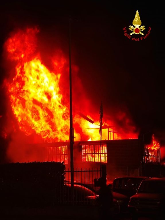 Carmagnola, incendio in un deposito di demolizione auto: pompieri in azione tutta la notte per domare le fiamme