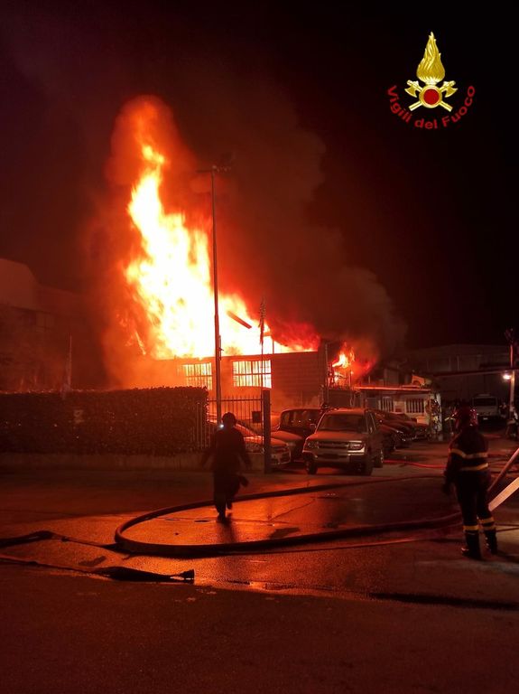 I Vigili del fuoco di Torino sono intervenuti intorno alle 23 di ieri a Carmagnola per l'incendio di un deposito di demolizione auto.