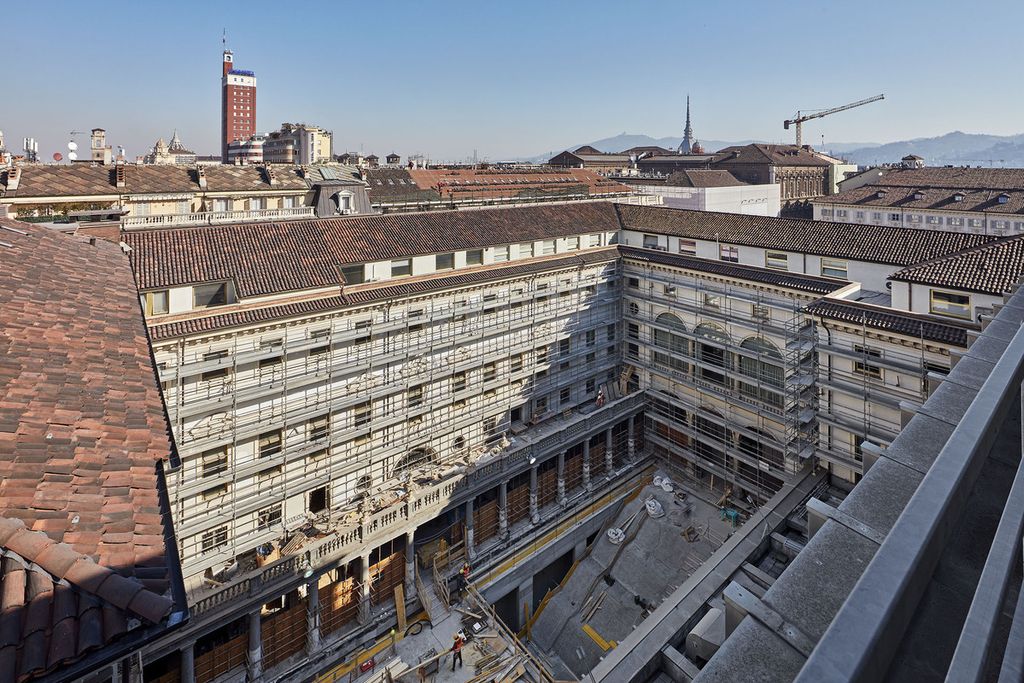 Il percorso di visita non si limita agli spazi ipogei. Risalendo fino al piano terra il pubblico troverà un chiostro all’aperto delimitato da Piazza San Carlo, via XX Settembre e via Santa Teresa, dove apriranno anche una nuova libreria, il caffè e il ristorante.