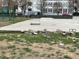 Una piattaforma in cemento dell'area skate è stata sventrata e alcune panchine danneggiate. Alessi (FdI): “Spaccio, siringhe e risse, manca la volontà politica di risolvere i problemi”