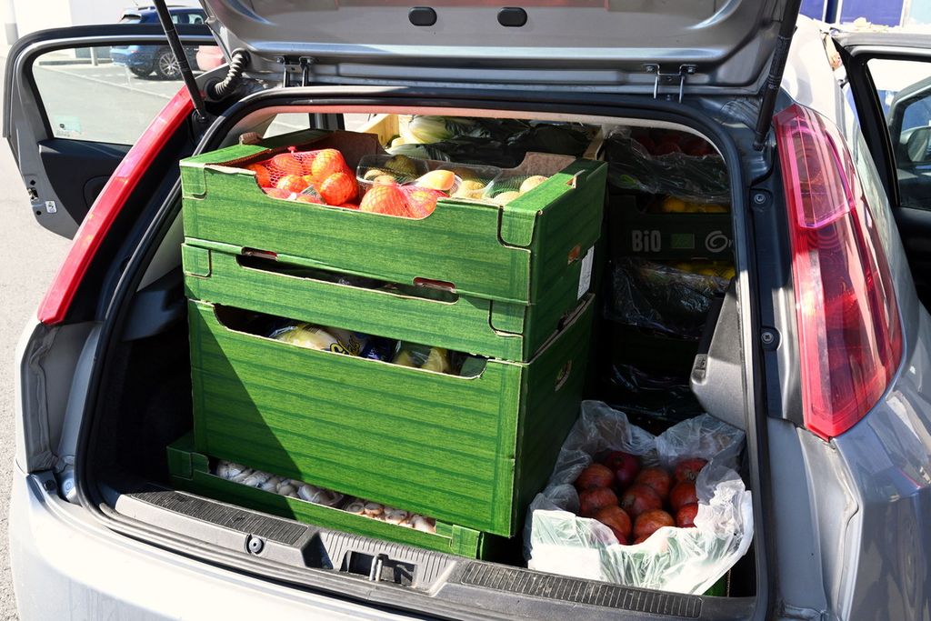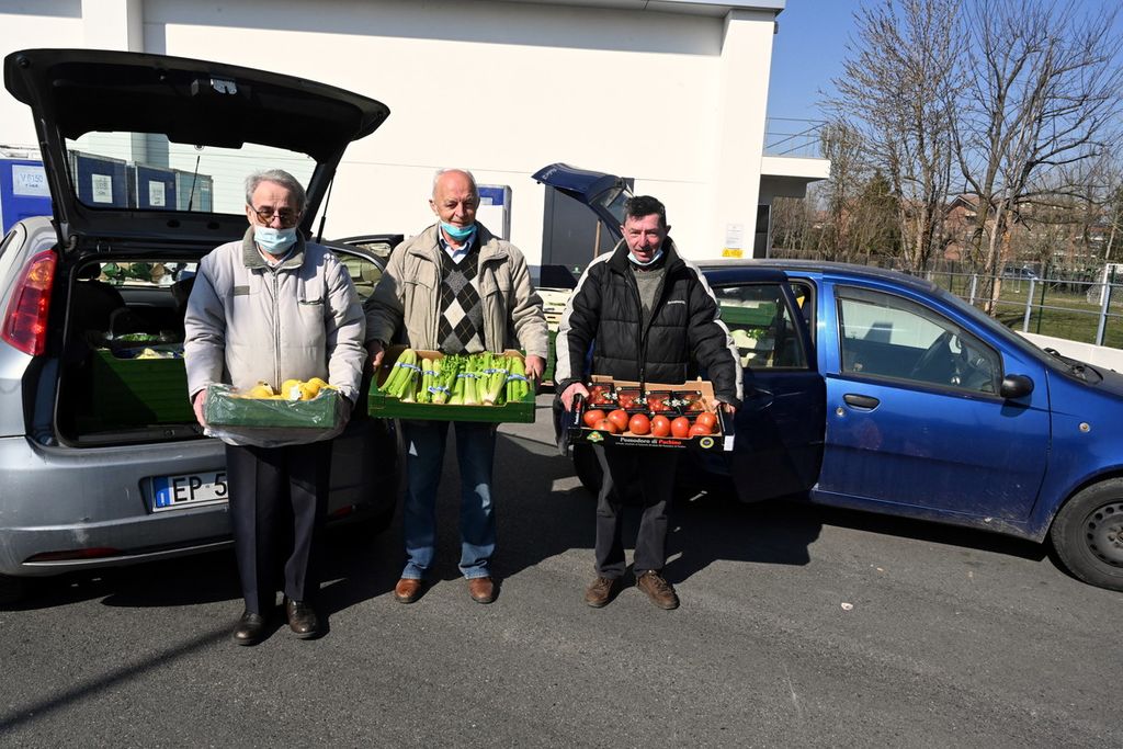 Auto parcheggiate con il bagagliaio spalancato e - all'interno - moltissime cassette di frutta e verdura. Non è una spesa "normale", quella che sta facendo a Settimo Torinese Attilio Conte, presidente della Famija Setimeisa