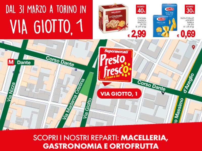 Giovedì 31 marzo si INAUGURA il Supermercato Prestofresco in via Via Giotto1.