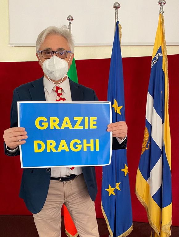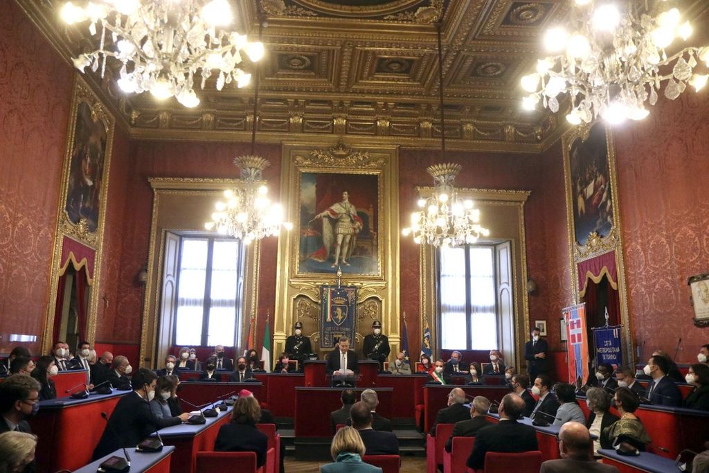 "Chi oggi vuole farci credere - rincara l'ex candidato a sindaco del centrodestra - che questi miliardi siano solo un regalo o non conosce il significato di “fondo perduto” o è in malafede: questi soldi legano Torino a impegni concreti e stringenti che si scaricheranno su famiglie e imprese". Al contrario il capogruppo della lista civica Per Torino Silvio Viale ha esposto il cartello "Grazie Draghi", mentre il M5S la bandiera della pace per ribadire il "no alla guerra e all'aumento delle spese militari".