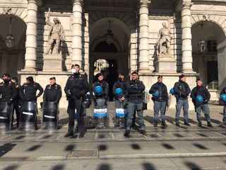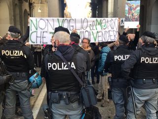 La visita del premier è fissata per le 15. In piazza Palazzo di Città momenti di tensione tra manifestanti e forze dell'ordine
