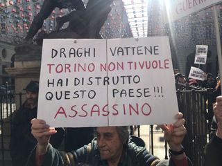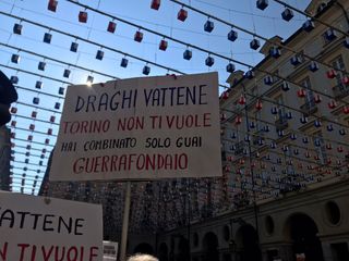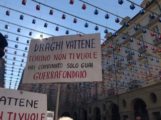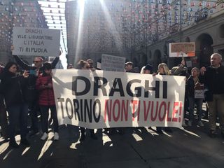 "Draghi, Torino non ti vuole". Tensione in piazza Palazzo di Città, dove un centinaio di manifestanti No Green Pass si sono ritrovati sotto il Comune per contestare il premier, atteso oggi alle 15 per la forma del Patto per Torino.