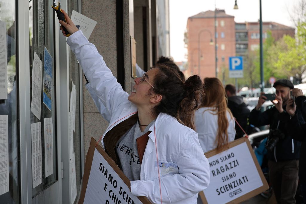 Nella mattina di oggi, mercoledì 6 aprile 2022, un gruppo dottorandi e ricercatori del Politecnico e dell’Università degli Studi di Torino hanno incollato ripetutamente agli uffici della Regione Piemonte, le pagine del terzo e ultimo capitolo del più grande report scientifico esistente sulla crisi ecoclimatica curato dalle Nazioni Unite, rilasciato in diretta mondiale il 4 aprile scorso.