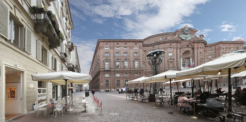 Gustare un caffè nel dehor esterno è certamente un’esperienza unica: ci si trova immersi nella bellezza della Piazza e proprio di fronte al magnifico Palazzo Carignano.