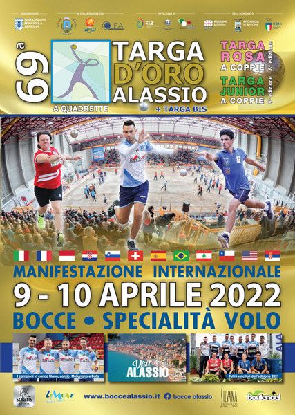 Dopo un interminabile periodo di vincoli legati al protrarsi della pandemia, d distanza di tre anni, ad Alassio l’inizio della primavera torna ad essere caratterizzato dall’appuntamento con lo sport delle bocce, specialità volo. Un appuntamento che conferma la Città del Muretto capitale internazionale di questa disciplina. La storica Targa d’oro (nata nel 1954, non disputata nel 2020 e slittata a ottobre nel 2021) si disputerà sabato 9 e domenica 10 aprile, ovviamente al Palaravizza.