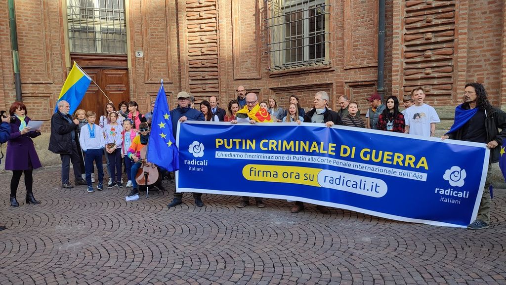 Il sostegno, però, è stato anche materiale attraverso una raccolta firme con un obiettivo ben preciso: “Non abbiamo cantato l'inno per la pace – ha sottolineato il presidente dei Radicali Italiani Igor Boni – ma per la libertà e la resistenza dell'Ucraina, che poi è anche la resistenza dell'Europa perché la guerra di Putin contro l'Ucraina è una guerra contro l'Europa. Visto quello che sta accadendo sotto gli occhi di tutti chiediamo l'incriminazione del presidente russo al Tribunale Penale Internazionale dell'Aia: chi vuole può sottoscrivere l'appello su Radicali.it”.