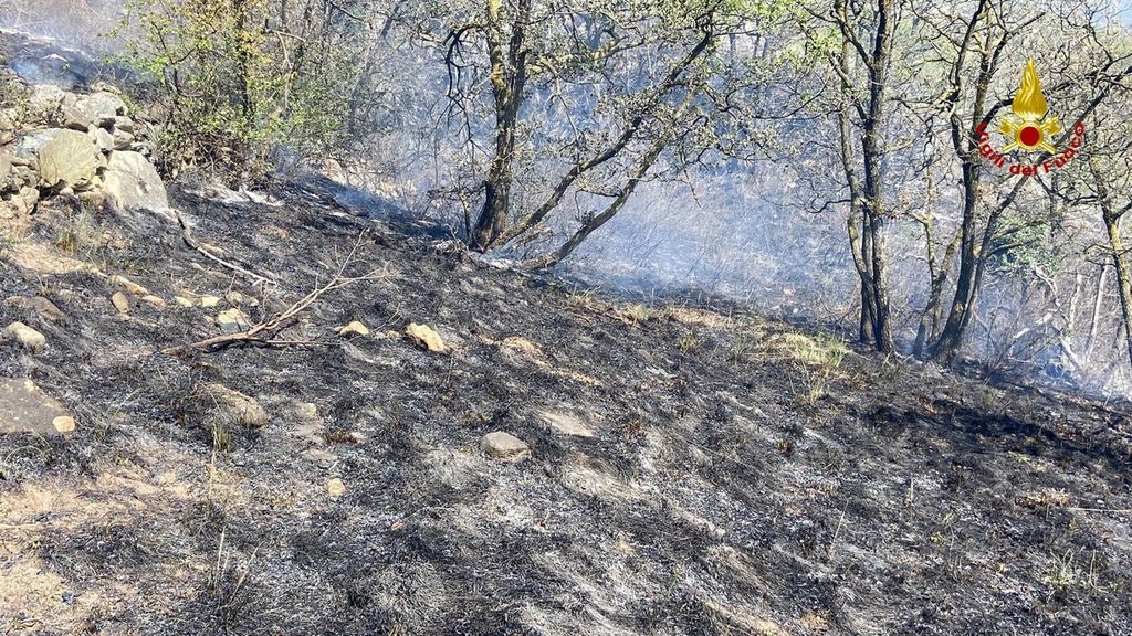 Incendio nei boschi sopra Chianocco: vigili del fuoco in azione