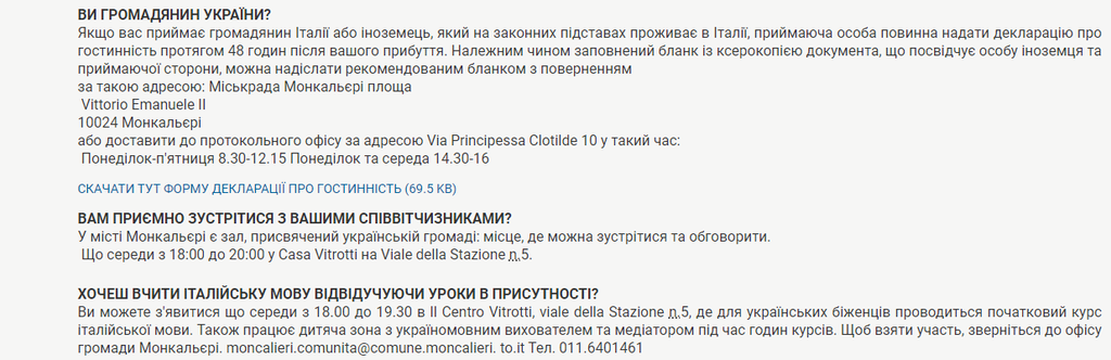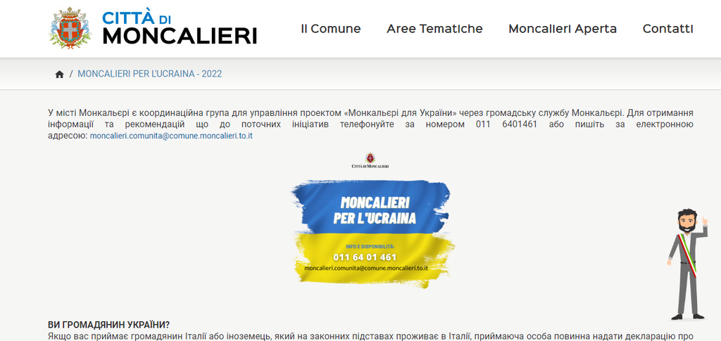Il sindaco Paolo Montagna ha spiegato in questo modo l'iniziativa: "Chi scappa dalla guerra non ci ha scelto per trascorrere qui le vacanze, per questo in primis abbiamo convocato i 71 moncalieresi che hanno origine ucraina per capire quali potevano essere le esigenze dei loro parenti e amici in arrivo da Kie. Il problema della lingua è apparso subito fondamentale, da qui siamo partiti pensando a creare la sezione speciale del sito in lingua ucraina: perché fosse facile e fruibile da tutti".