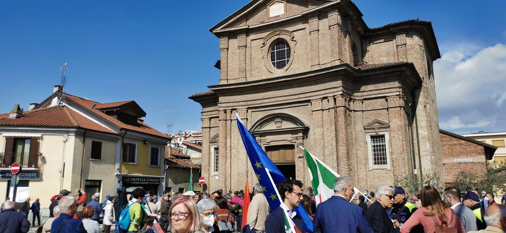 A Moncalieri, di fronte al palazzo comunale, c'era una piccola folla: bersaglieri, reduci, sopravvissuti ma anche tanti giovani, a testimoniare come il 25 aprile sia sentito anche dalle giovani generazioni, coinvolte grazie anche all'impegno in favore delle scuole dell'assessore Davide Guida. "Oggi torniamo a rispettare la tradizione, perché la Festa della Liberazione è e deve essere una festa di popolo", ha ricordato il sindaco Paolo Montagna nel suo discorso. "Una ricorrenza in cui si celebrano le donne e gli uomini della Resistenza che con il loro coraggio e il loro sacrificio hanno offerto alle future generazioni, e quindi anche a noi, la possibilità di essere liberi".
