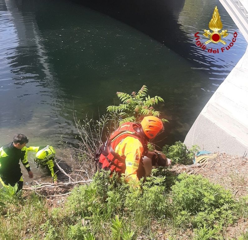 Un cane, Clipper, è finito nelle acque fredde del Po: a salvarlo è stato il pronto intervento dei Vigili del fuoco.